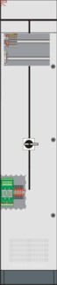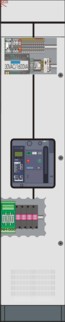 Für den Eingangsanschluß ist ein geschottetes, separates Anschlußsystem für den Anschluß von Parallelkabeln mit einem Anschlußquerschnitt bis zu 240mm²/ Außenleiter als Schienenverteiler vorgesehen und mit einer frontseitigen Abschottung mittels Tür oder Blende zu verschließen. Die Kabeleinführung erfolgt in der Regel von unten. Sollten die Kabel von oben kommen, sind diese über die Rückseite des Feldes (abhängig von den Schrankherstellern) zu führen.