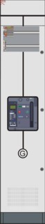 Die Bemessungsströme (In) sind in Abhängigkeit von der Umgebungstemperatur auszulegen (Bemessungsstromreduzierung > Derating). Die verwendeten Leistungsschalter sind standardmäßig für Stromschienen ausgelegt. An alle Leistungsschalter können Hilfsauslöser (Spannungs- und Unterspannungsauslöser), Hilfsschalter und Alarmschalter einfach und direkt angeschlossen werden. Spannungs- und Unterspannungsauslöser haben eine Betriebsspannung von 230VAC. Der Spannungsauslöser dient zum betriebsmäßigen Fernauslösen des Schalters über das vorhandene BUS-System. Dagegen wird der Unterspannungsauslöser über die Sicherheitskette des Leistungsschalters angesteuert (Not-Aus und Spannungsüberwachung etc.). Alle Leistungsschalter können zum betriebsmäßigen Fernein- und Fernausschalten mit Motorantrieb 230VAC ausgewählt werden. Die Ansteuerung und Rückmeldung erfolgt über eine Busverkabelung an die entsprechende Leitebene (z.B. am Touchscreen oder über PC). Das Einspeise- oder Abgangsfeld wird, je nach Auswahl, entweder mit Kompakt- oder offenen Leistungsschalter in Festeinbau oder Einschubtechnik bestückt. Die Kompaktschalter besitzen einen Überlast- und Kurzschlussauslöser, dagegen kann bei den offenen Leistungsschaltern mit und ohne Überlast- und Kurzschlussauslöser (LI, LSI, LSIN) ausgewählt werden.